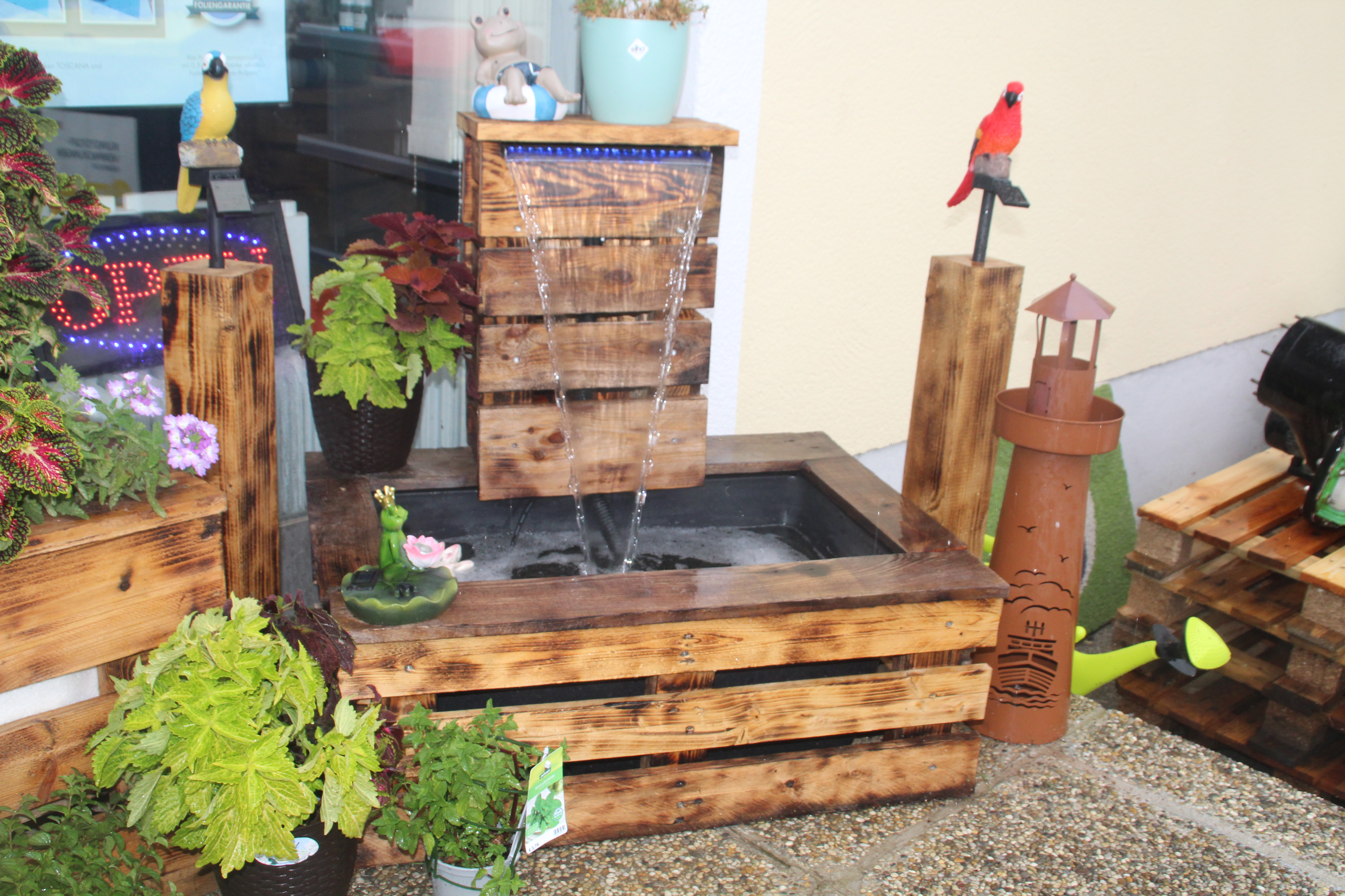 Brunnenset besteht aus: Victoria Quattro H30x78x39 (65l) Niagara Led weiß (in blau separat erhältlich) Spiralschlauch Schlauchklemmen Schlauchtülle Pumpe